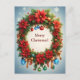 Ljus och glädjefull julkrans prydd med livfulla julstjärnor, glittrande dekorationer, snöflingor och band på en varm mjuk bakgrund som symboliserar glädje och firande under högtiden.