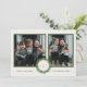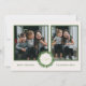 Lägg till dina favoritfoton i vårt julkort med en festlig lövkrans på en krämfärgad bakgrund och en koordinerande randig baksida. Ett elegant sätt att fira julen med familj och vänner!