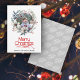 I det här vackra julkortet visas en julkrans med bär och blommor. Utandningen, som är vackert gjord från grenar, accentueras med pulserande röda bär och vackra blommor. Ditt foto är elegant inramat av andedräkten, skapar en festlig och bjuder in visning. Kortet innehåller även ord "God jul" i ett slående rött färg, som presenteras med ett stiliserat och konstnärligt typsnitt. På baksidan av kortet finns det en charmerande mönster med samma stiliserade text i vitt, som ställs mot en lugnande grått-bakgrund.