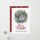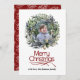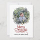 Julandetag med grönt kort och fotokort för helgdag. En festlig julkrans med lush grey omger ett omhuldat familjefoto som skapar en varm och inbjudande helgdag visning. Under bilden presenteras ord "God jul" elegant i ett typsnitt av snyggten, vilket ger designen en något sofistikerad nyans. På baksidan visas en diagonal arrangemang av frasen "God jul" i skarpt vitt, mot en djup röd bakgrund som förstärker den övergripande festila andan.