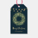De här märkrna med trendig och snyggt helgdag innehåller en söt, vattenfärg, julfrand med guld färgad stjärnaccents och elegant string ljus, med modern manusgrafi på en mörk, midnattblå bakgrund.