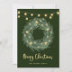 De här julkorten för trendig och snyggt har en söt, en vattenfärgad julkrans med stjärnaccenter för guld och ljus för elegant, med modern manusgrafi på en grönt.