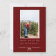 Vattenfärg julkrans med tallbar, "Glad jul", platt julkort för foton på antiek krämfärgad bakgrund. Baksidan av kortet har ett andra inramat foto på en djupröd bakgrund med mallinjer för din egen text.
