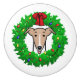 Julkrans och Ljus-piskor - Kute tecknad-piskans ansikte, inramad av en julkrans med grova löv, bär, gammaldags ljus och stor röd båge. Copyright © Angi Laframboise & Brian Laframboise. Den vackra julen i hund aveln ger hundälskare.