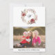 Det här charmerande julkortet har en häpnadsväckande andedräkt som är förskönad med röda blommor, bär och löv i rött och beige. I mitten presenteras familjens monogram på ett smakfullt sätt, med ett uppskattat foto under. Kortets baksida visar en underbar andedräkt mönster som integrerar monogrammet och skapar en harmonisk och festlig utformning.