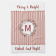 Fira högtiden med denna anpassningsbara köks-handduk i lantlig stil med klassiskt randigt mönster, en julkrans i varma röda, bruna och beige nyanser och en anpassningsbar initial. Två anpassningsbara textplatshållare som säger "Merry and Bright" och "Baked Just Right" tillför en touch av julstämning. Anpassa denna design med din egen text eller namn och initial för att skapa en unik present till människor som älskar att laga mat och baka.