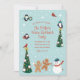 Festive gräns med penguiner, kardinaler, pepparkaksgubbar och snögubbe som spelar mellan snöflingor och stjärnor. All text kan redigeras för party