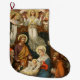 Julstrumpa med babyen Jesus jungfruliga Mary och St Joseph i Manger med änglar