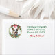 På den här Helgdag returadressetikett är en australisk Hund av nötkreatur inramad i en grönt julkrans med en röd båge överst. Din anpassningsbar är i grönt vid högerna, med texten fält för hälsning i rött nedan.