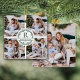 Den här eleganten har en modern personlig som bevarar julprydnaden med 4 foton på framsidan och en på baksidan. I mitten på framsidan finns en spjälad andedräkt med ett första monogram, familj namn och år.
