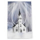 Kyrkan i snö och och is rays att verka till b en stjärna som den glänsande ljusa julen semestrar eller övervintrar precis, eller den kristna gåvan hänger lös