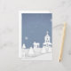 Utformningen har ett festligt landskap i en snöstad med hus och kyrka.