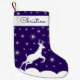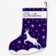 Anpassningsbar Jul Stocking.Cute rener hoppar över vita snowdrifts, djupt blått himlar med lysande stjärnor. God jul! Trendigets handskrivna teckensnitt. Den magiska julstämningen. Perfekt för alla åldrar och gender. Passar in i många stilar av juldekoration.