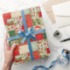 En kruka av julklapp inslag, inklusive Jultomten, holly och snöflingor i rött, grönt och vitt gör söt inslagning papper som är perfekt för dina helgdag.