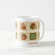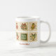 En glad jullärare i mugg med vintage på portot frimärke-stil illustrerar festskoleikoner i . Perfekt för hett kakao, kaffe eller te... I helgdag gör mugg en tankfull julklapp till lärare.