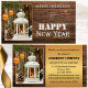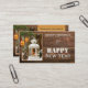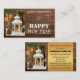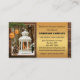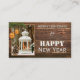 Ett visitkort med en tänd lykt med tallkotte och gyllene julkulor på en rustik trädgård bakgrund, med dina anpassade julhälsningar. Det gyllene textområdet på baksidan kan raderas om du inte behöver det. Detta visitkort är ett vackert sätt att tacka befintliga kunder eller välkomna nya kunder.