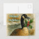 Det här julkortet visar en akvarellillustration av en kanadagås prydd med julblad och bär. Hälsningen kan anpassas eller köpas som den visas med "God Jul".