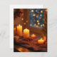 Detta vykort skapar en varm bild med en jul-liknande nattvy utanför fönstret och vackert upplysta ljus. Uttryck dina känslor med ett sentimentalt vykort.