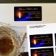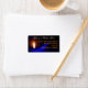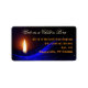 Julens returetiketter. Bred storlek med skript längst upp, "Åt oss ett barn är fött", i skript. Namn och adress trycks i orange över en mörk blått svart bakgrund med ett brinnande ljus på lämnat sida. Text justeras mot högerna med utrymme för upp till fyra linjer.