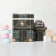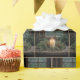 Ett tänt ljus sitter på en träledd av ett snöfönster omgivet av jul gräs grenar och röda bär