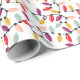 Docka dina hals och gåvor galore med denna papper som har en mönster av traditionell stil-sträng ljus i trendig och feminin rosa, mint-blått, senap-gult, körsbärsröd och sockerplommonlila mot bakgrund av snövit.