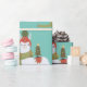 Mönstra designen av en gullig llama som ha på sig den stack peruanska hatten, den långa vinterscarfen och en julgran på dess baksida. Krickabakgrund. Konst och design vid Mira