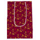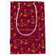 Gyllengula jullönnblad och röda bär på mörkrött mönstrat jul namngivet och personlig meddelandepresentpåse. Perfekt för julpresenter till familjen eller affärskontakter. Originalillustration och mönsterdesign av www.mylittleeden.com