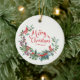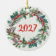Den här designen har kardinal med en arrangemang av grönt löv, löv och bär från julklapp. På motsatt sida - julkrans.