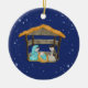 Denna julprydnad är designad med baksida för den starry natten för blått som malas med en manger som fästas till den.