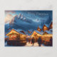 Julvykortet har en djup snöby i bergen på kvällen. Folk går tjockt klädda över den festliga, upplysta julmarknaden. Ett romantiskt motiv för alla som kärlek jul! Texter, anpassade. Söt vykort för dina julhälsningar.