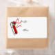Den vackra röda blybladen med rosett band dekorerar julen i namn bricka.