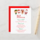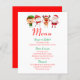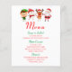 Lägg till lite kul till dina bord med denna söta gröna och vita julmeny med tomte, en alv, snöman och Rudolf med röda näsan ren.