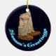 Ett matt par med text som läser "Season's Greetings" i blått och vitt som läggs ovanpå en stjärnbakgrund.