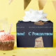 Ett par muddar som läggs ovanpå en stjärnfältsbakgrund med texten "S Rozhdestvom" (En rysk jul hälsning) i blått och vitt. Ytterligare text med texten: "Mjukarna hängdes med försiktighet av skogen" visas också. Ett långt nordligt besök på den berömd dikt "Ett besök från St. Nicholas". Dikt, även känd som "Twas the Night Före jul", offentliggjordes först anonymt 1823 och tilldelades senare Clement Clarke Moore, som erkände författarskapet.
