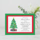 Jultemat inbjudningskort för möhippan. Inbjudan har rött och grönt helgdag med Julgran och presenter.