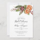 Rustiskt jultema med inbjudningskort för möhippan-kort med vattenfärgad illustration av botaniska vinter inklusive mistletoe, gräs träd gren, bär, orange osv.