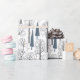 Ett vackert presentpapper med positiva jul- och vintersmönster med svarta och blå skogsträd och växter mot vit bakgrund. Perfekt för att slå in dina jul-, nyårs-, födelsedags- och andra presenter. Denna design är anpassningsbar. Du kan byta bild. Du kan överföra designen till en annan produkt. Om du vill flytta bilden, anpassa den till en vald produkts form, eller lägga till text, använd knappen "Redigera design" eller "Personalisera" (beroende på situationen) i blått. Det kommer att överföra dig till "Designverktyget" där du kan göra alla anpassningar. Var bara kreativ, anpassa och köp en, njut och var glad.