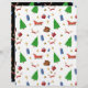 Sött julpapper med ett mönster av julgranar, slädar, presenter och mer. På ena sidan är bakgrunden vit medan den på andra sidan är svart. Illustrerad och designad av Patricia Alvarez.