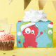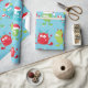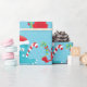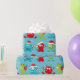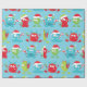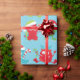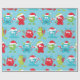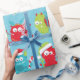 Roligt fånig, den färgrika helgdag som slår in papper, presenterar julmonster med Santa hattar, gåvor och candy cane på en blåttbakgrund.