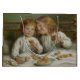 Den här designen har en målning av den engelska Victorian-tidbitaren Joseph Clark (1834-1926). Det visar två små barn som äter frukt och kex på julförmiddagen. Flickan leker på sin bror och pojken tittar på tittaren när hans syster ser på honom på ett lovande sätt. De unga barnen ligger sitta i sängen tillsammans när de njuter av julhelgen. Det finns julklackare på sängbladen som barnen har dragit. Det finns också en skål frukt framför dem. Barnen har båda brunt hår och de bär vita nattkläder. Det är en vacker bild av en traditionell jul-firande i Victorian England.