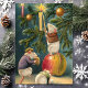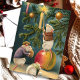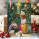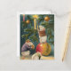 Vackert vintage julgruskort. Den här designen har tre små möss som dekorerar en Julgran.