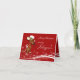 Tur tecknad med en julhatt som håller en present bakom ryggen. Insidan har en vit Julgran med röda prydnadsämnen och alla är på djup röd bakgrund med vita snö-funktioner som gör att du kan göra en mycket söt, roligt och julhälsningskortsinbjudan.