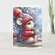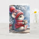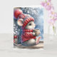 En mysigt mus i en röd tröja och som sitter i ett frostigt fönster som håller kopp i hett kakao samtidigt som man beundrar ett snölandskap med gräs träd och snöflingor. Text kan ändras.