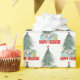 Julgran med helgdag, Glad helg och en peekande mus med en Jultomten hatt på vit bakgrund. Bakgrunden till färg kan ändras.