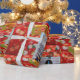 En stängsel av en julmusikbox som är en Bok. Det är ljust och färglöst sitta på Red Julklapp. Det är på julafton Papper.