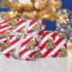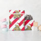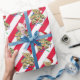 Den bruna nallen trasslade in i julen i ljus på den röda och vita candy cane rand i mönster.
