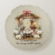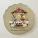 Rund julkudde - Nativitetsmangerscenen. Tan färg framför kudden, en mörkare guld färg på baksidan. Söt juldekorkudde. Tack för tittar.