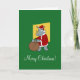 Personligens utformning med illustration av ett sött leende noshörande noshörning med Jultomten-kostym, i gulten med bakgrunden till grönten, för barn för helgdag, med anpassadets textmall för namn eller meddelande
