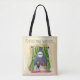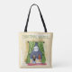 Toteväska med en fantasifull akvarellmålning. Ett ungt barn i pyjamas och hennes kattdjur ser ut genom fönstret på julafton. Tomte och hans renar flyger över natthimlen i silhuettform med en stor fullmåne som lyser upp deras väg.