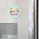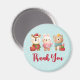 En magnet med en söt illustration med en kniv, en björn och en hjort som är klädd i festila redskap. Vämjeligt och vismiskt.